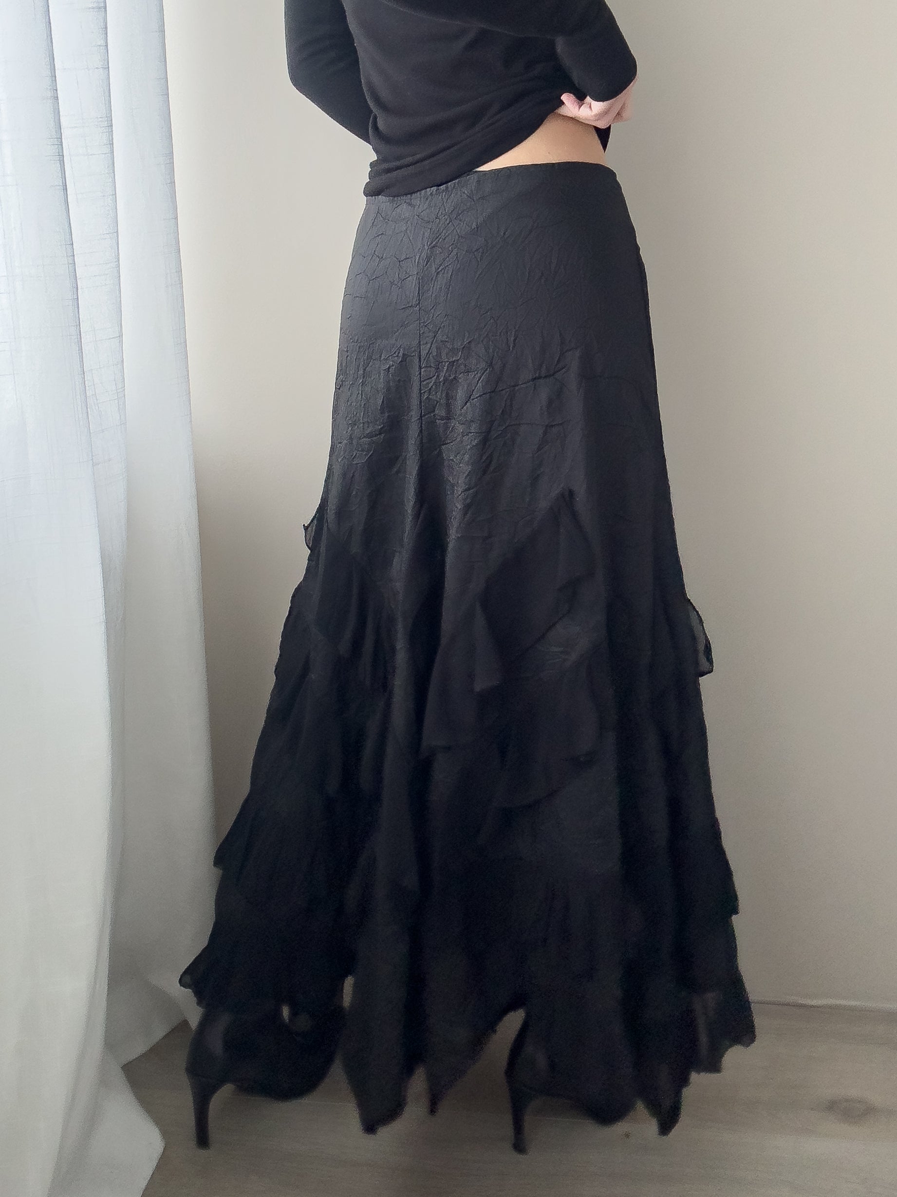 Black Maxi Skirt with Ruffles (M)