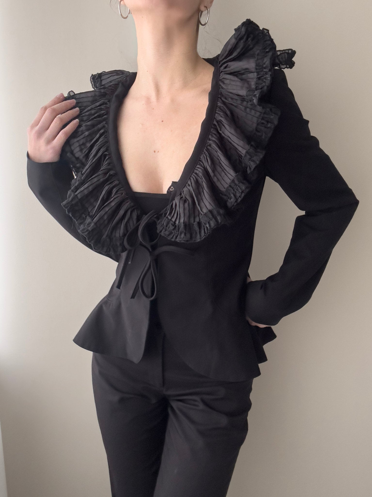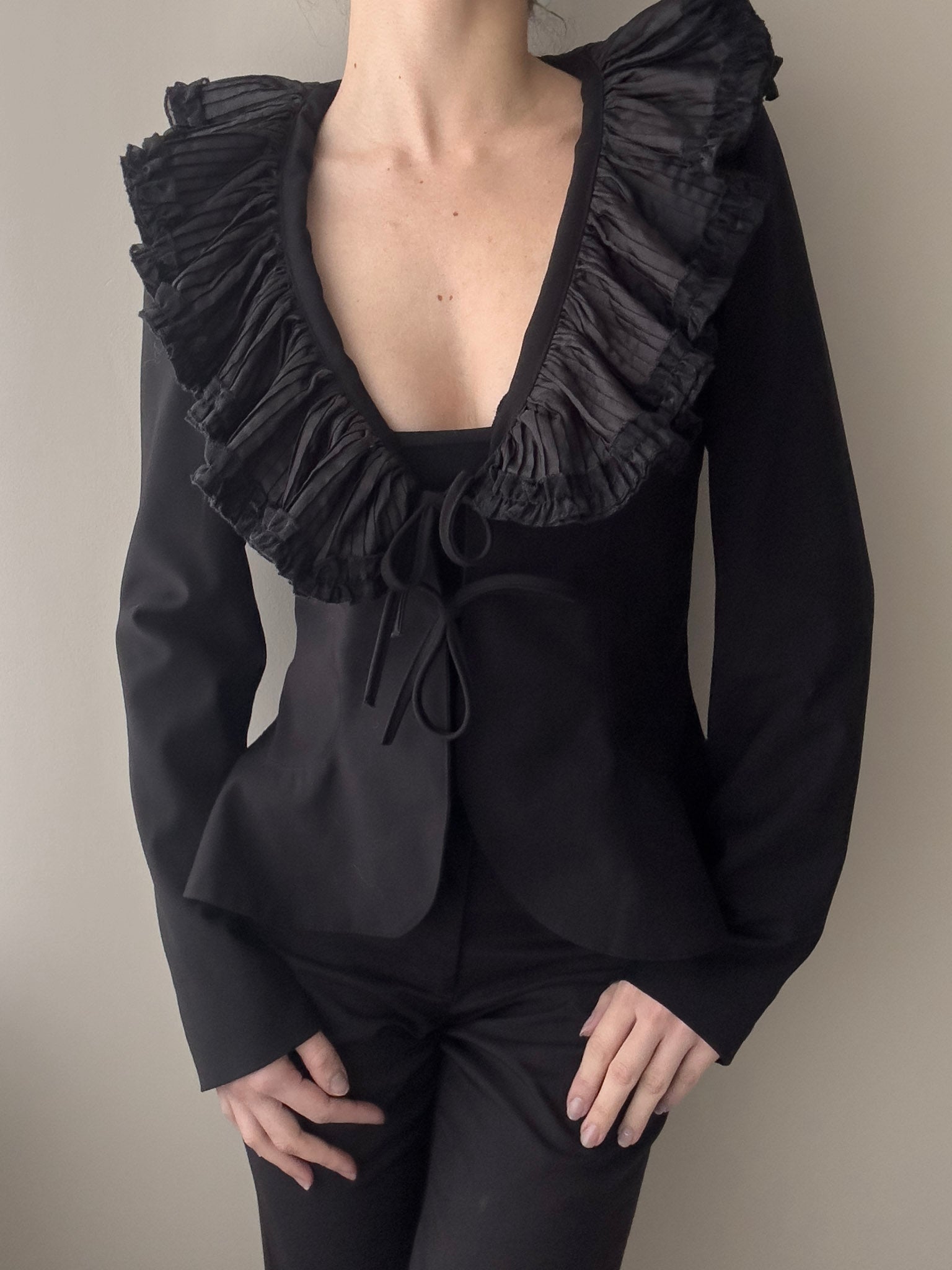 With ruffled v-neckline