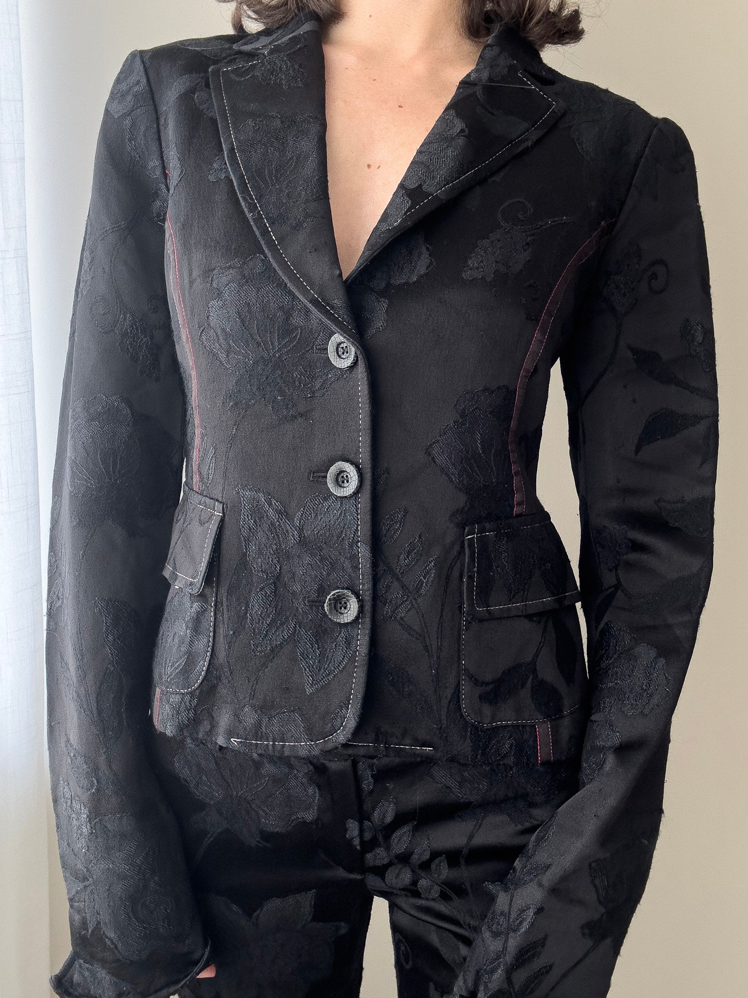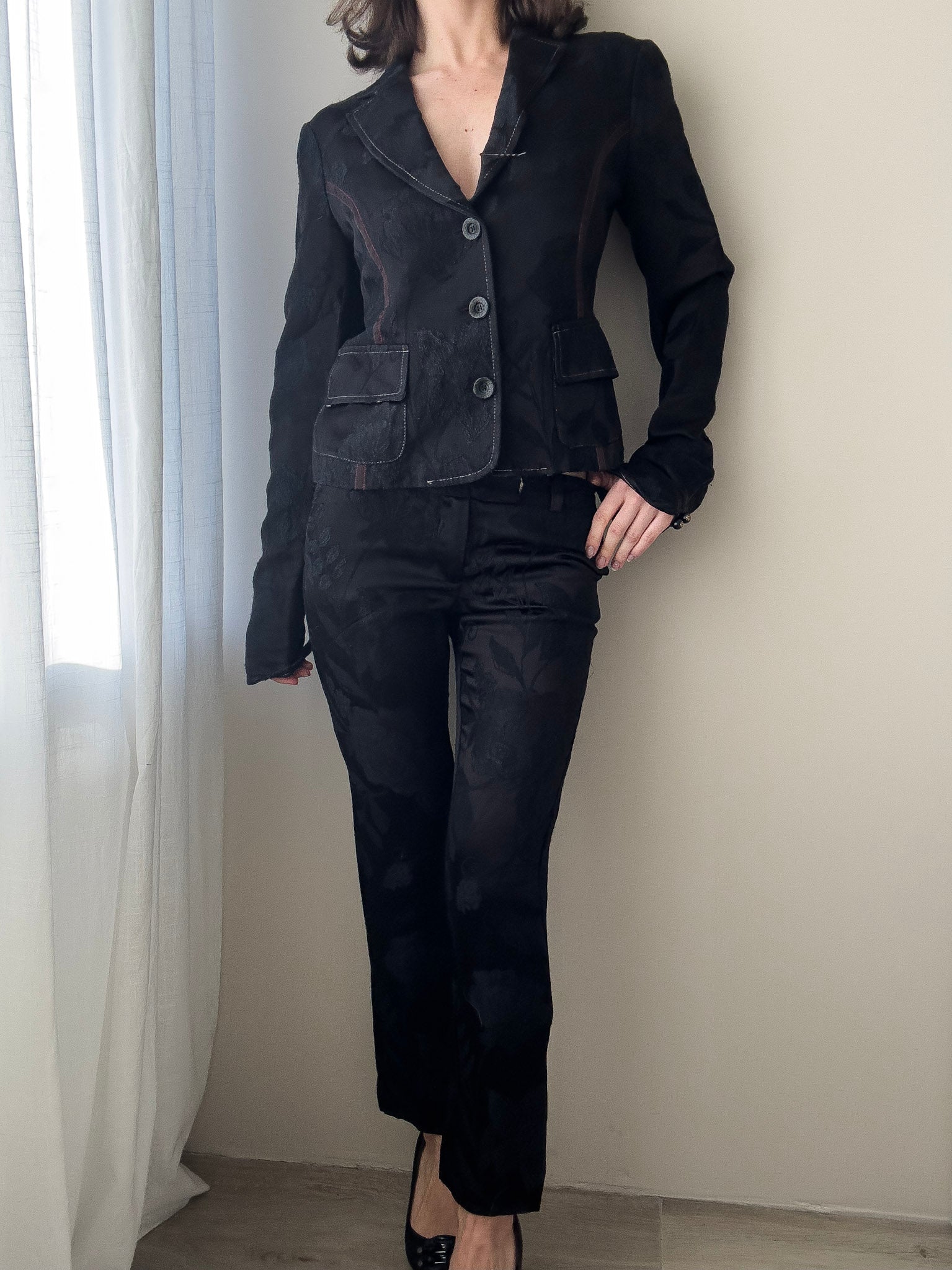 Cavalli Black Floral Jacquard Suit (XS)